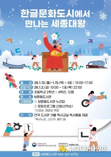 세종시립도서관이 오는 12일부터 16일까지 보람동도서관에서 초등학교 2∼4학년 학생을 대상으로 ‘2026년 전국 도서관 겨울 독서교실’을 운영한다.
