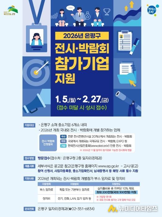 서울 은평구는 내달 27일까지 ‘2026년 국내외 전시‧박람회 개별 참가 지원사업’에 참여할 기업을 모집한다고 밝혔다.