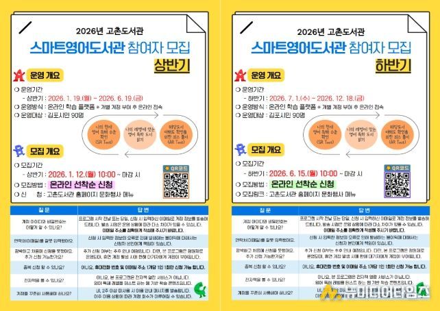 김포시 고촌도서관이 2026년 1월 19일부터 12월 18일까지 ‘2026년 스마트영어도서관’을 운영한다.