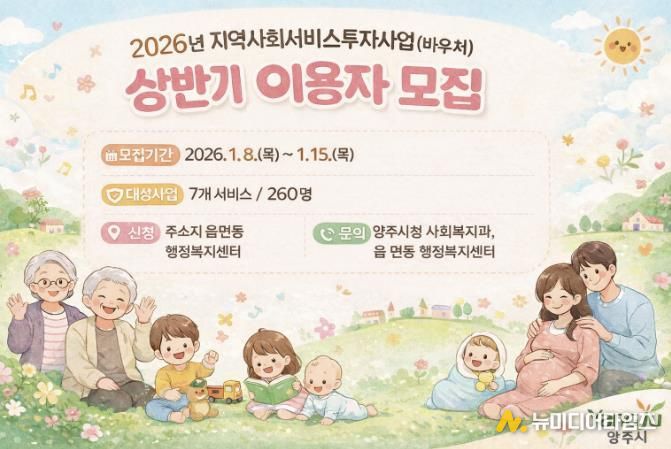 양주시가 2026년 1월 8일부터 1월 15일까지 지역사회서비스투자사업 이용자를 모집한다.