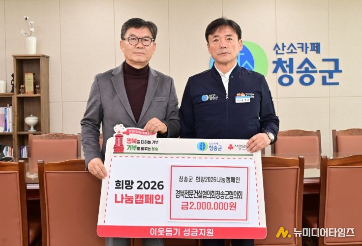 청송군은 5일 경북전문건설협의회청송군협의회(회장 김만근)가 청송군을 방문해 지역 내 어려운 이웃을 돕기 위한 성금 200만 원을 기탁했다고 밝혔다.