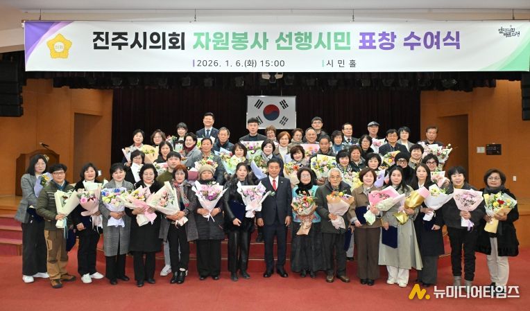 진주시의회는 1월 6일 시청 시민홀에서 지역사회의 귀감이 된 시민 60명을 대상으로 『2025년 하반기 선행시민 표창 수여식』을 개최했다.