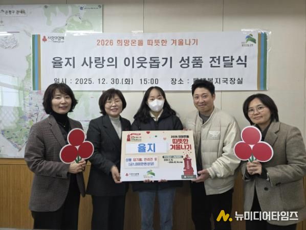 서울 은평구는 지난달 30일 관내 업체인 율지, 라이크스윗과 함께 지역 이웃을 위한 사랑의 성품 전달식을 진행했다고 밝혔다.
