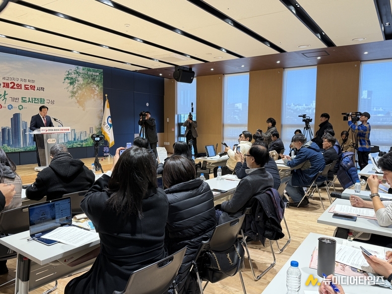 이날 회견의 핵심은 세교3신도시를 단순 주거단지가 아닌 '직주락(직장·주거·여가)이 어우러진 자족도시'로 만들겠다는 구상이었다.