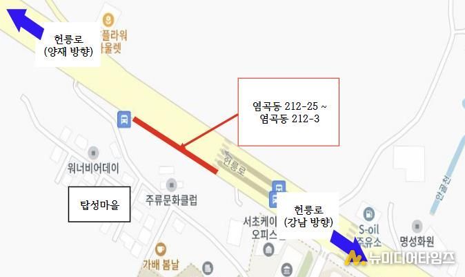 이번 사업은 보행 불편과 도시미관 저해 문제를 해소하기 위해 추진됐다. 해당 구간은 지역 내 헌릉로(염곡동 212-25~212-3) 약 150m 구간으로, 폭 2.5~3.0m의 보행로가 경사지고 노후화되어 보행 불편은 물론 미끄럼 사고 위험이 높다는 민원이 지속적으로 제기된 바 있다. 주민의견 수렴 결과 주민 91%가 찬성한 이번 사업은 구의 노력으로 공사비 전액 시비를 확보해 지난해 10월부터 추진됐다.