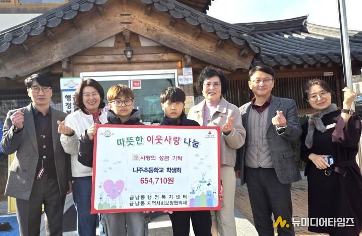 나주초등학교 학생회와 학부모회는 지난 5일 ‘나주초등학교 나눔장터’를 통해 마련한 수익금 65만 4710원을 어려운 이웃에게 전해달라며 금남동에 기탁했다.
