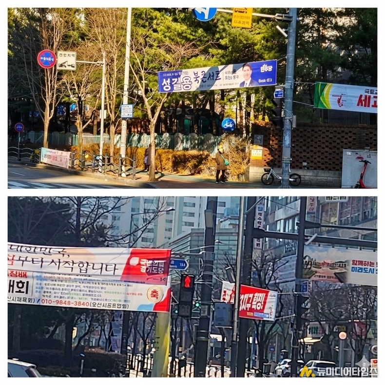 오산시의회 성길용 부의장이 오산시청의 '선택적 현수막 철거'를 두고 강력히 반발하고 나섰다. 성 부의장은 8일 자신의 페이스북을 통해 "법 집행은 누구에게나 공정하게 적용되어야 한다"며 오산시의 차별적 행정을 정면으로 비판했다. 성 부의장에 따르면 오산시청은 최근 오는 1월 10일 예정된 그의 '북콘서트' 현수막 수십 개를 게첨한 지 불과 나흘 만에 전격 철거했다. 시청이 내세운 이유는 '도시 미관 저해'와 '과다 게첨'이었다.