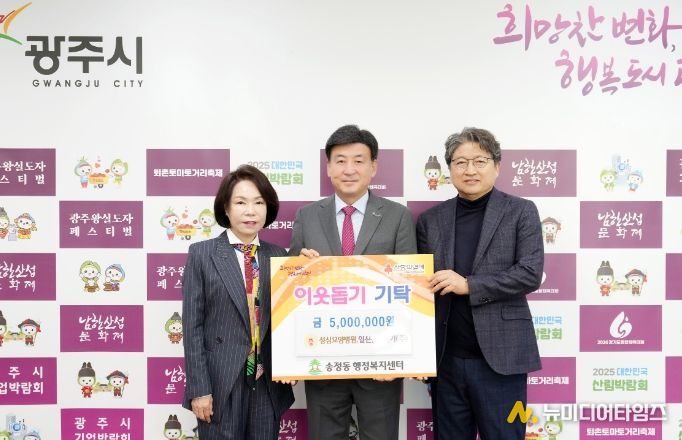 성심요양병원 유미하 이사장과 일신산업전기(주) 고수영 대표는 8일 광주시 송정동에 이웃돕기 성금 500만 원을 기탁했다.