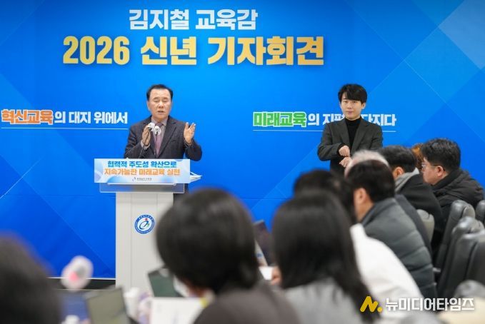 김지철 충남교육감은 8일, 도교육청 회의실에서 ‘2026 신년 기자회견’을 열고, ‘2025년 주요 성과와 2026년 12대 중점 추진 과제’를 발표했다.