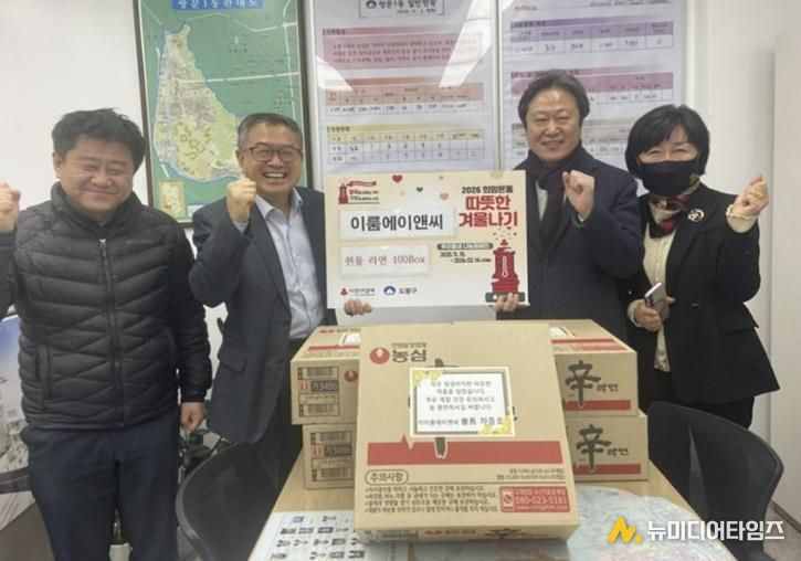 서울 도봉구 쌍문1동은 지난해 12월 17일 ㈜이룸에이앤씨로부터 라면 100박스(225만 원 상당)를 전달받았다. 라면 100박스는 현재 지역 내 취약계층 100여 가구에 순차적으로 전달되고 있다.