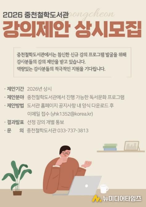 원주시 중천철학도서관은 시민의 다양한 요구에 부응하기 위해 2026년 독서 문화 프로그램 제안을 상시로 접수한다.