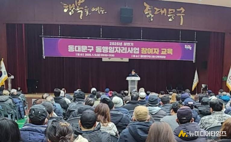 서울 동대문구는 지난 9일 구청 2층 다목적강당에서 ‘2026년 상반기 동행일자리사업’ 참여자 302명을 대상으로 성희롱 예방 및 산업안전보건 집합교육을 실시하고, 같은 날부터 본격적인 근무에 들어간다고 밝혔다. 구는 “현장에 배치되기 전 기본 교육을 통해 참여자의 권익을 보호하고 안전 수칙을 숙지시키는 데 초점을 맞췄다”고 설명했다.