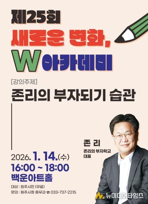 원주시는 오는 14일 오후 4시, 백운아트홀에서 ‘제25회 새로운 변화, W아카데미’를 개최한다.