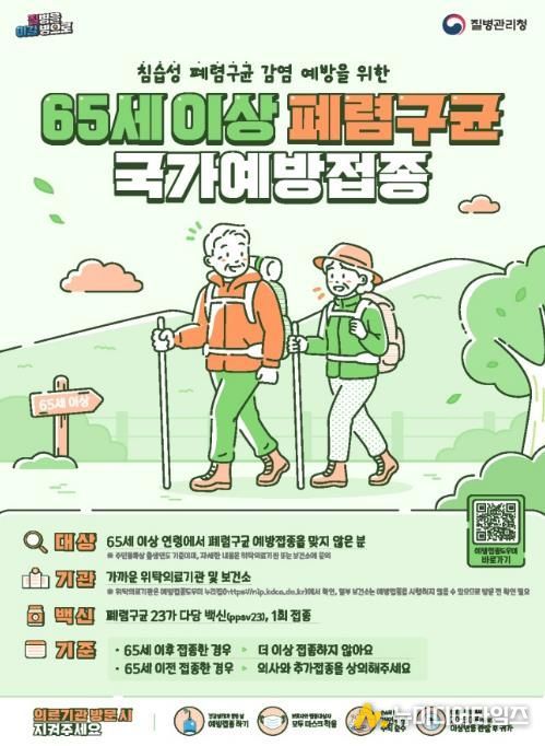 접종 대상자는 65세 이상(1961년 12월 31일 이전 출생자)으로, 폐렴구균 23가 다당 백신을 아직 접종하지 않은 어르신이다. 신분증을 지참해 보건소 또는 관내 위탁의료기관을 방문하면 무료로 접종받을 수 있다.