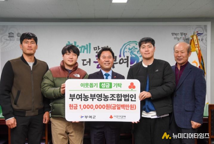 이에 군수는 “지속적인 나눔을 통해 지역사회에 모범을 보여주고 있는 부여 농부영농조합법인에 깊이 감사드린다.”라며, “기탁해 주신 성금은 꼭 필요한 이웃들에게 소중히 전달하겠다.”라고 전했다.