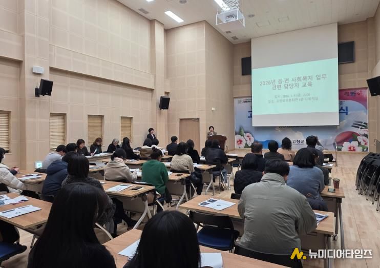 고창군이 지난 9일 고창군보훈회관 1층 다목적실에서 읍·면 사회복지 업무 담당자 30여 명을 대상으로 2026년 사회복지사업 추진방향 교육과 공유의 시간을 가졌다.