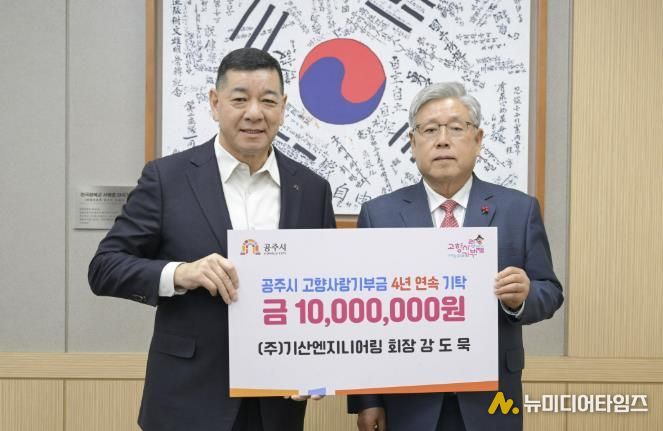 공주시는 지난 9일 ㈜기산엔지니어링 강도묵 회장이 4년 연속 고향사랑기부제 고액 기부를 이어가며 남다른 고향사랑의 마음을 전하고 있다고 밝혔다.