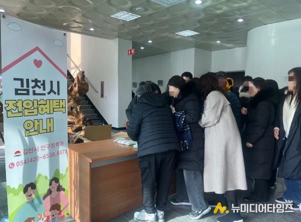 이날 김천시 인구정책과 직원들은 ▲전입지원금 ▲기숙사비 지원금 ▲교복 지원금 등 학부모들의 교육·생활비 부담을 덜어주는 전입 관련 혜택을 중점적으로 설명하고 전입을 독려했다.