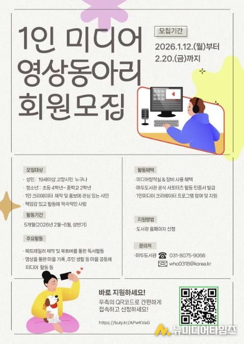 고양특례시 마두도서관이 미디어 창작실을 기반으로 한‘1인 미디어 영상동아리’를 2월부터 6월까지 운영한다. 영상동아리를 통해 지역주민을 마을의 문화와 역사를 기록하는 시민활동가로 성장시키고, 청소년은 물론 고양시민의 독서경험을 영상으로 확장하고 사회적으로 공유하는 새로운 시도에 나선다.