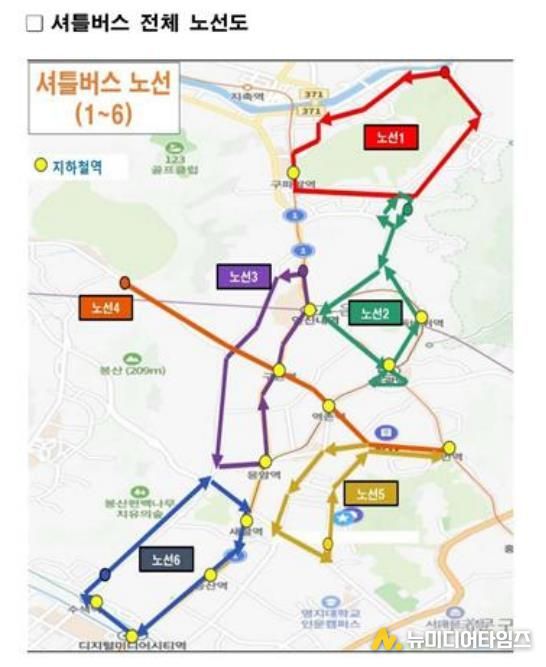 ▲서울경찰청기동대·우남아파트부터 선정중고등학교까지는 셔틀 4번, 4대 ▲충암고교앞·대주피오레아파트부터 응암초등학교까지는 셔틀 5번, 4대 ▲수색초등학교부터 DMC파인시티자이까지는 셔틀 6번, 4대로 총 6개 노선에 24대를 투입한다.