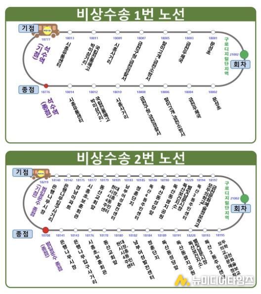 구는 2개 권역에 총 11대의 임시 무료셔틀버스를 투입한다. 오전 5시부터 밤 10시까지 오전과 오후 10~20분 배차간격으로 운행한다.