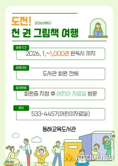 동해교육도서관(관장 안은희)은 지역주민의 정서적 공감능력과 상상력 증진을 위해 독서 프로그램 ‘도전! 천 권 그림책 여행’을 운영한다고 밝혔다.