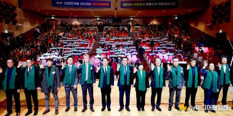 보령시는 13일 보령문화예술회관 대공연장에서 ‘바람과 햇빛, OK만세보령의 미래가 되다’를 주제로 시민 800여 명이 참석한 가운데 RE100 비전선포식 행사를 개최했다.