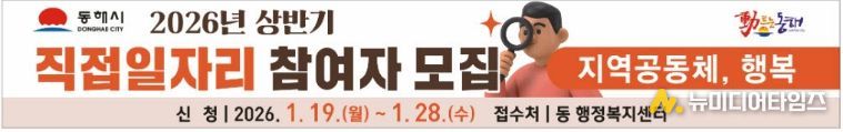 동해시는 취업 취약계층의 생계 안정을 돕고 지역경제에 활력을 불어넣기 위해 오는 19일부터 2026년 상반기 직접일자리사업 참여자 모집을 시작한다.