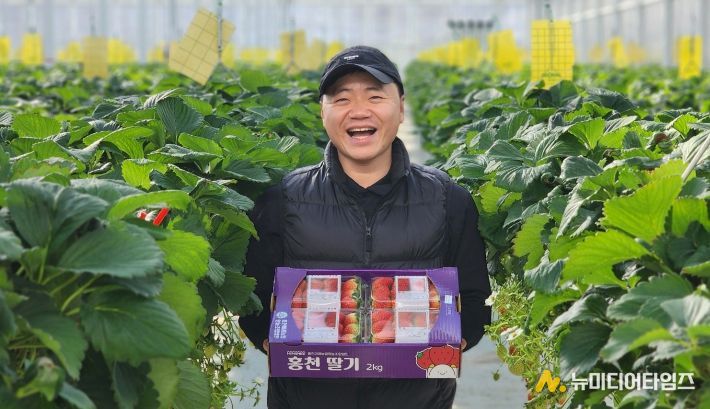 홍천군 임대형 스마트팜에서 청년농업인이 정성껏 재배한 싱싱한 딸기가 본격적인 출하를 시작했다.