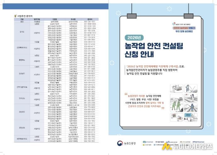 특히 올해는 중대재해처벌법 강화로 현장 대응의 중요성이 더욱 커짐에 따라, 상시근로자 5인 이상을 고용한 농업경영주를 중심으로 상담 대상 농가를 모집한다. 이를 통해 농업 현장에서의 법적 책임 이행은 물론, 실질적인 사고 예방과 안전 관리 수준 향상을 도모할 계획이다.