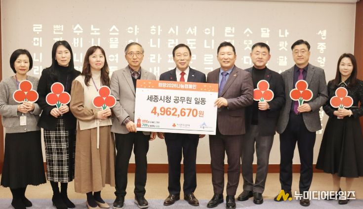세종사회복지공동모금회에 따르면 14일 14시30분 세종시청 5층 세종실에서 최민호 세종시장, 박상혁 세종모금회장, 김윤회 세종모금회 부회장 등이 참석한 가운데 ‘희망2026나눔캠페인 희망성금 전달식’을 가졌다.