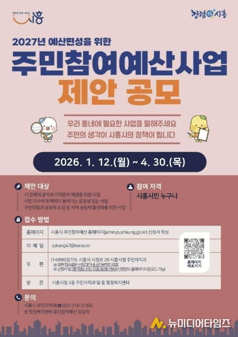 시흥시는 오는 4월 30일까지 주민들이 직접 사업을 제안하는 ‘시흥시 주민참여예산 제안’을 신청받는다.