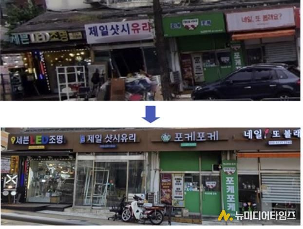 이를 바탕으로 12월 말까지 점포당 최대 300만 원을 지원해 총 51개 업소의 간판을 정비했으며, 보행에 지장을 주던 돌출 간판 44개를 철거했다.