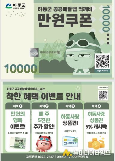 하동군이 지난 14일부터 ‘공공배달앱 먹깨비 할인 이벤트’를 시작했다. 소상공인에게는 배달앱 중개 수수료 감면 혜택을, 군민들에게는 배달비 부담 완화 혜택을 주는 이벤트다.