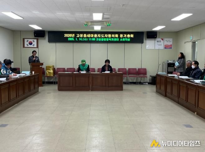 고성읍새마을지도자협의회는 1월 14일, 고성읍행정복지센터 2층 소회의실에서 고성읍장, 도의원, 군의원, 고성농협 조합장 등 내빈과 새마을지도자 30여 명이 참석한 가운데 2026년 정기 총회를 개최했다고 밝혔다.