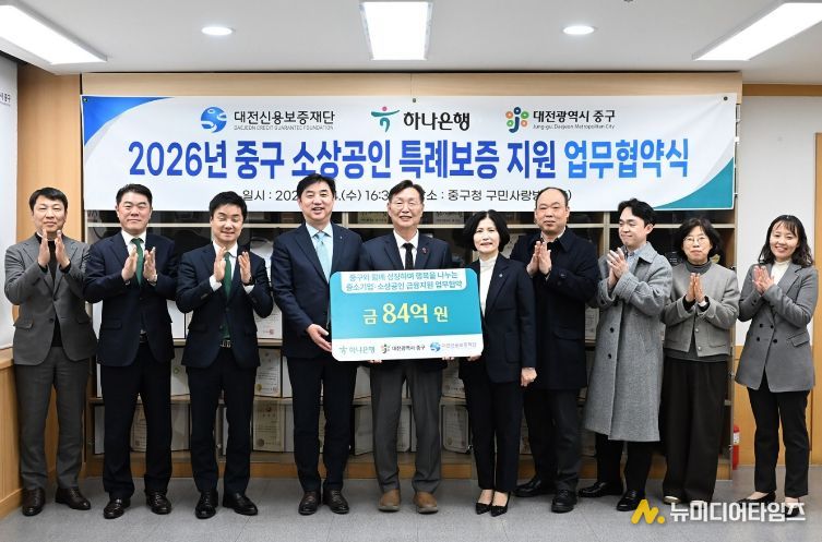 대전 중구는 지난 2024년과 2025년에 이어 올해에도 중구 관내 소상공인 경영안정자금 지원을 위해 대전신용보증재단, 하나은행과 협약을 맺고 총 84억 원 규모의 소상공인 특례 보증을 지원한다고 15일 밝혔다.