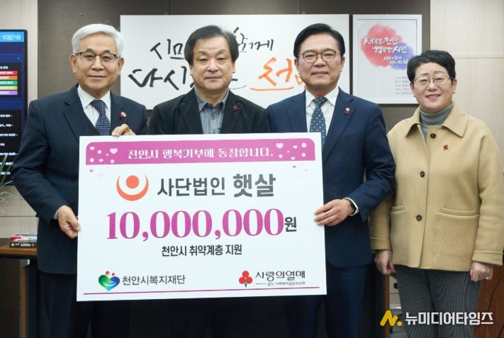 햇살은 지난 2024년부터 천안시복지재단을 통해 후원을 이어오고 있으며, 지난해에는 충남사회복지공동모금회에도 1,000만 원을 후원하는 등 지역사회를 위한 나눔 활동을 꾸준히 실천하고 있다.