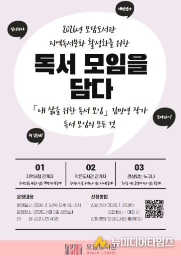 김포시 모담도서관은 독서 모임을 주제로 2월 5일 목요일 오후 3시부터 5시까지 저자 강연을 운영한다.
