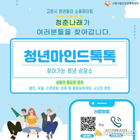 고양시정신건강복지센터에서는 청년들의 정신건강 접근성을 높이기 위해 찾아가는 정신건강 상담서비스 ‘청년마인드톡톡’을 1월부터 12월까지 연중 운영한다.