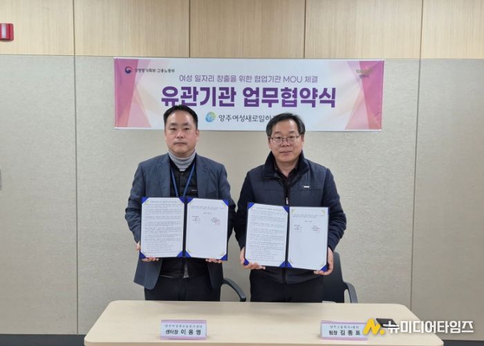 양주여성새로일하기센터는 양주고용센터와 지난 15일 양주고용복지센터에서 '국민취업지원제도 연계·협업체계 구축'을 위한 업무협약(MOU)을 체결했다.