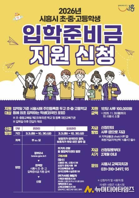 시흥시는 올해부터 관내 초중고 입학 자녀 가정에 입학준비금을 10만 원씩 지원한다. 이번 지원은 도서나 문구류 등을 새로 마련해야 하는 신입생 가정의 경제적 부담을 줄여주고, 교육 기본권을 강화하고자 추진됐다.