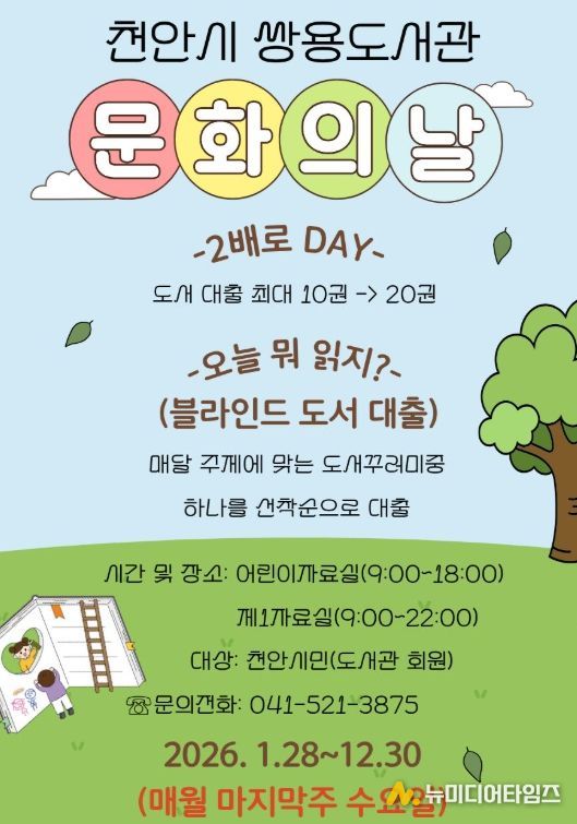 천안시 쌍용도서관은 매달 마지막주 수요일 ‘2026 문화가 있는 날’ 행사를 운영한다고 16일 밝혔다.