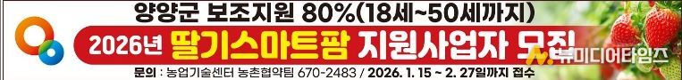 한편, 양양군은 지난 해 총 9억 6천만 원의 사업비를 투입해 딸기 스마트팜 조성 3개소와 시설 개선 1개소를 지원했으며, 딸기 판매 및 체험장 조성, 포장재·딸기묘·육묘자재 지원 등 다양한 딸기산업 육성 정책을 지속 추진 중이다.