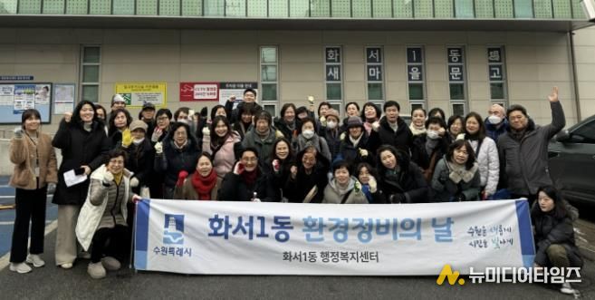 수원시 팔달구 화서1동은 지난 15일, 통장협의회 등 단체원 및 주민들과 함께 2026년 설맞이 관내 환경정비를 실시했다고 밝혔다.