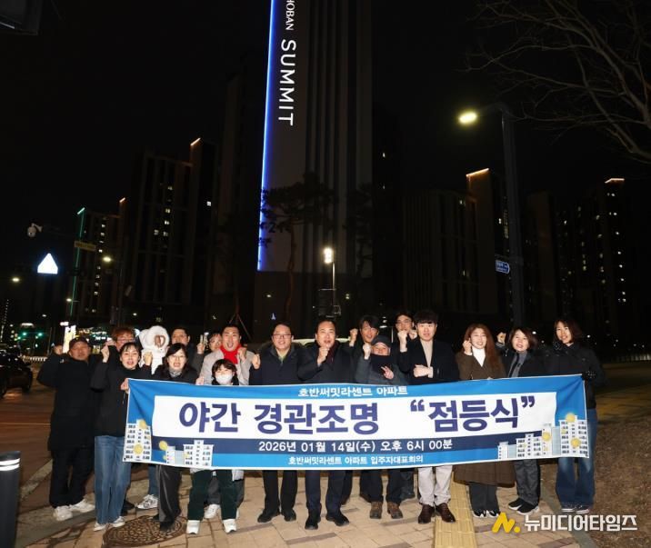 이번 점등식은 기존 옥탑부 조명을 보완해 새롭게 설치한 ‘라인 경관조명’의 본격적인 가동을 알리는 행사로, 아파트 외벽을 따라 조성된 경관조명이 점등되며 단지 전반의 야간 경관이 한층 밝고 쾌적하게 개선됐다.