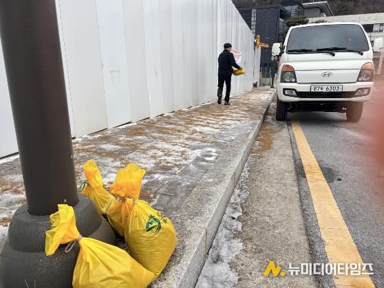 또한, 상시 관리가 어려운 음지 구간에는 인근 주민들이 필요시 사용할 수 있도록 모래주머니와 염화칼슘을 비치했고 제설차량을 활용한 작업 구역도 확대하도록 조치했다.