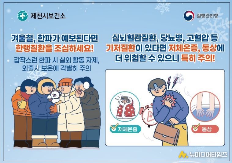 제천시보건소(소장 안순덕)가 겨울철 한파로 인한 건강 피해를 예방하기 위해 독거 어르신, 만성질환자, 거동 불편자 등 건강 취약계층을 대상으로 집중 건강관리를 추진한다.