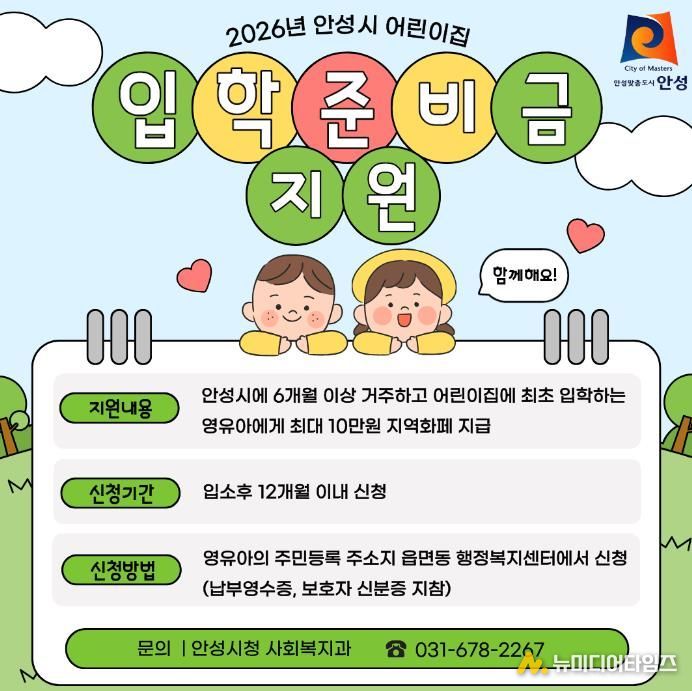 안성시는 2026년부터 어린이집 입학준비금 지원사업을 시행한다고 밝혔다.