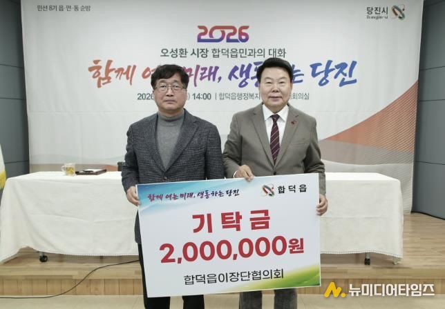 당진시는 합덕읍이장단협의회가 지난 16일 합덕읍 행정복지센터에 지역 주민을 위해 사용해 달라며 이웃돕기 성금 200만 원을 기탁했다고 19일 밝혔다.