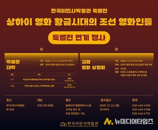 인천광역시 시립박물관 분관 한국이민사박물관은 특별전 〈상하이 영화 황금시대의 조선 영화인들〉과 연계해 중국 영화 황제로 불렸던 배우 김염(金焰)의 대표 영화 작품 상영회를 개최한다.